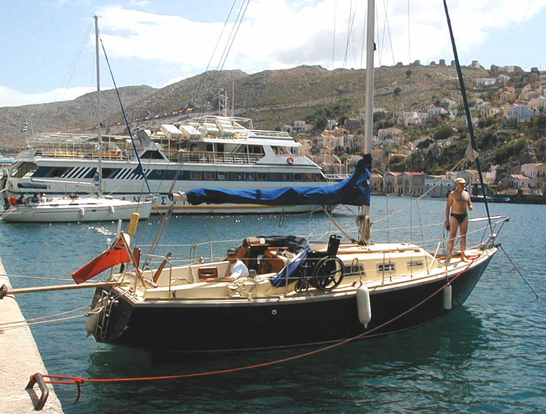 This is Second Wind, with some friends on the isle of Simi |