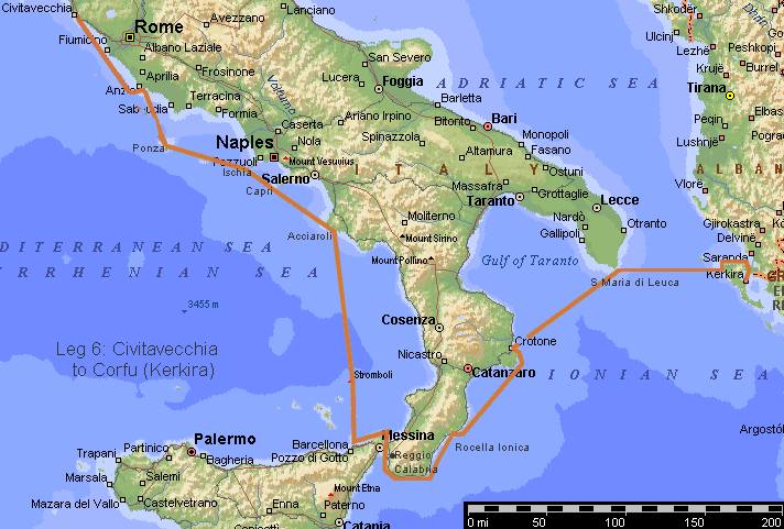 I had been concerned about the stories of pirates operating out of Albania. Several boats had been boarded and guns produced and it meant that I was concerned about taking the northerly approach to Corfu via the heel of Italy. The alternative is a three day stint direct from Reggio and that was obviously not on if I was sailing by myself. But John reported that the pirates had overreached themselves: one had resisted a Greek coastguard and shot him dead. This was too much for the Greeks. They let it be known that any boat that didn't give way would be rammed at high speed and they may even have carried out this threat. The pirates hadn't been seen for months.