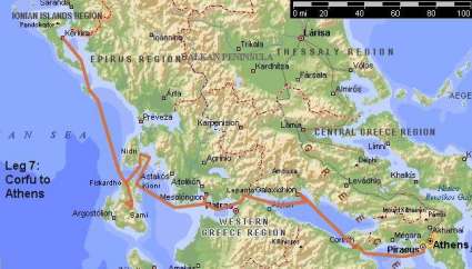 Today we had to reach the mainland. Having set out, I discovered I had miscalculated the distance to Patra - instead of 30 miles it was 50 and we should have set out well before to get there before dusk. I found that Melonogisi, on the north side of the gulf, was 10 miles closer so decided to head there instead.